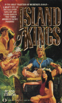 ”Across a Raging and Merciless Sea They Came… …the men of Captain James Cook whose two English vessels came upon paradise–and destiny–in the violence and tranquility of the islands. Here were sights as yet unseen by civilized eyes. Here were sultry tropic splendors. Rare exotic foods. Here were gloriously beautiful women… And Here Was Kamehameha the great king whose name was at once a legend, a prayer, and a curse…who dared the wrath of the gods & the fury of his enemies in a dream of conquest–as ruler of all the Hawaiin Islands. And out of the clash of these two cultures–in combat, in romance, in intrigue and ectasy–the stirring epic of Americ’s Eden unfolds! Island of Kings weaves glorious history around the lives of a young midshipman who dared desire a princess, a great chief who called him both cherished friend and hated foe, and a people who fought and bled to serve a mighty, savage land.”